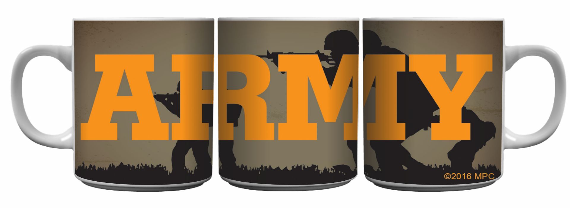 Army TEXT with Soldiers in Field Background Sublimation on 15 oz. White Ceramic Mug