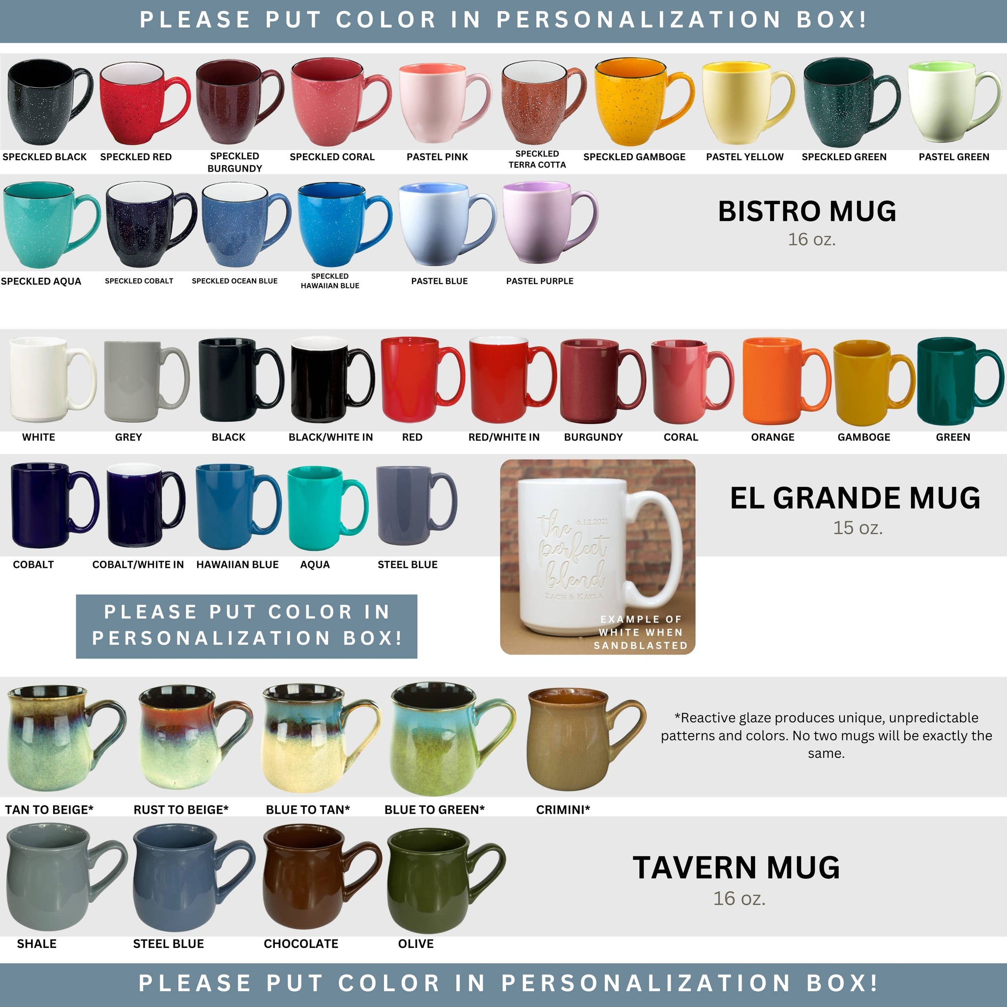 We offer a truly personalized experience from start to finish and are hands-on every step of the way. Everything is done in-house (SERIOUSLY! We don’t outsource anything!) and we are proud to give customers top-quality customer service and products. Our products are sandblast-etched, not lasered or screen-printed. Using this method, you can literally feel the depth of the design, and it will never wash off or fade! Because of this, the etching will always be an off-white to white shade, regardless of the product color chosen.